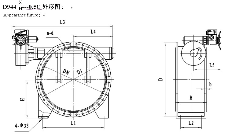 D944 X H---0.5C外形(xing)連接尺(chi)寸: