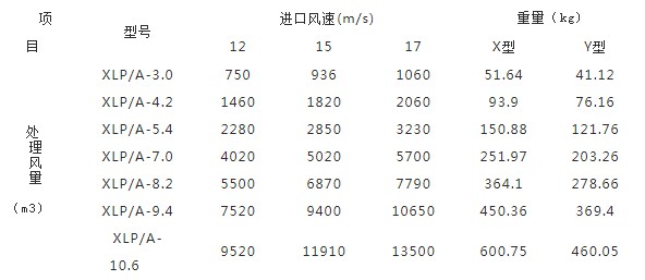 XLP/A型性(xìng)能參數表(biǎo):