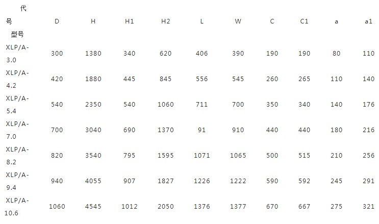 XLP(3.0-10.6)型外形尺(chi)寸表:
