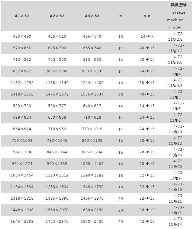 DN | D1 | D | b | n-d | 風(feng)機型号(hào) Breeze machine model |