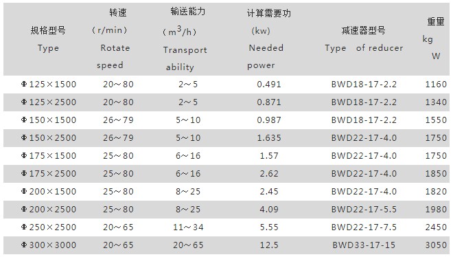 雙管螺旋喂(wei)料機主要技(jì)術參數: